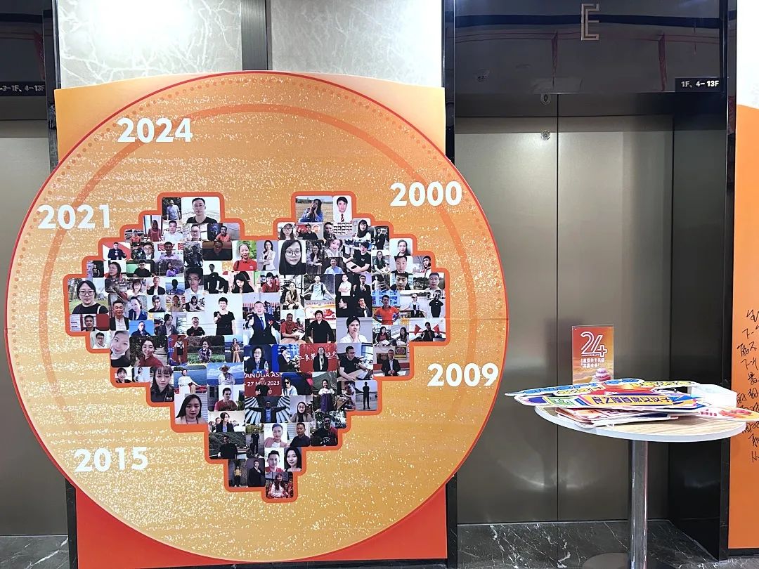 公司总部及全国各门店在公共区域、办公场所精心布置,通过在门头、前台、中庭、办公区域张贴24周年活动标识、宣传标语、吊旗等方式,全面营造隆重热烈、喜庆活泼的庆祝气氛。